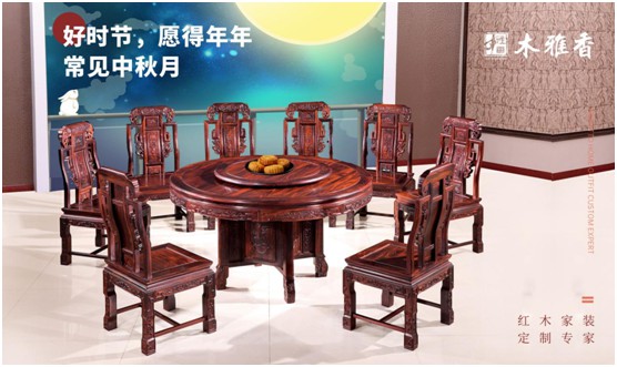 中秋節(jié),是我國的傳統(tǒng)節(jié)日,此時月亮又圓又亮,寄托著“圓滿”的美好寓意,因而又叫“團(tuán)圓節(jié)”。在紅木家具中,“圓”這個經(jīng)典元素也很常見,融入中式家裝風(fēng)格,用中國“圓”來打造的圓形餐桌,正是恰到好處地契合了一家人圓圓滿滿的主題。