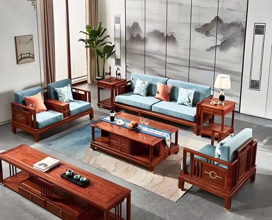 紅木家具的當(dāng)代轉(zhuǎn)型始于設(shè)計(jì)語(yǔ)言的突破。傳統(tǒng)紅木家具以繁復(fù)的雕花、厚重的榫卯結(jié)構(gòu)為標(biāo)志,而現(xiàn)代消費(fèi)者對(duì)簡(jiǎn)約、實(shí)用與時(shí)尚的需求,推動(dòng)了行業(yè)對(duì)設(shè)計(jì)的重構(gòu)。以李忠信紅木的“紫悅?cè)A庭沙發(fā)系列”為例,其設(shè)計(jì)團(tuán)隊(duì)將闊葉黃檀的天然紋理與現(xiàn)代極簡(jiǎn)線條結(jié)合,摒棄了傳統(tǒng)家具的繁冗裝飾,轉(zhuǎn)而通過(guò)流線型靠背與人體工學(xué)設(shè)計(jì)提升舒適度,成功吸引年輕消費(fèi)群體。