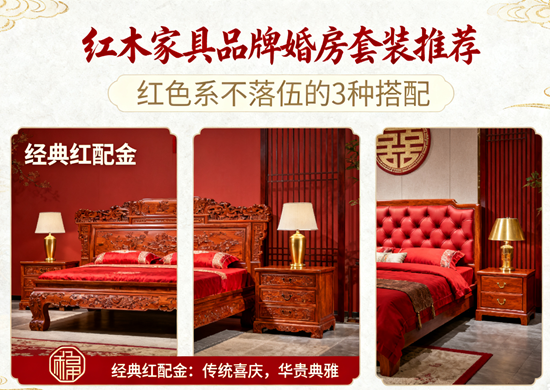 在當代婚房設計中,紅色系紅木家具正以新中式美學重構傳統與現代的對話。從故宮紅墻到現代智能家居,紅色不僅是東方文化的基因密碼,更成為連接歷史與未來的設計載體。本文精選三大品牌婚房套裝,結合環保工藝、智能科技與色彩趨勢,打造永不過時的紅色系紅木婚房方案。