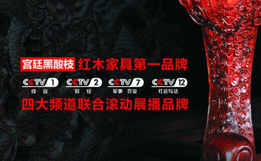 近日,記者由相關渠道獲悉,宮廷黑酸枝第一品牌風雷益已簽訂央視,攜手央視CCTV1、CCTV2、CCTV7、CCTV12四大頻道,在黃金時間滾動式展播品牌的廣告。覆蓋上午、下午廣告時段,最大范圍鎖定收視人群,快速提升風雷益的品牌知名度。