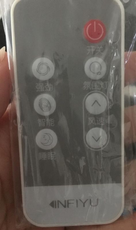 凈化器還附帶了遙控器,可以遠(yuǎn)程操作,很方便。遙控器上有7個(gè)按鈕,分別是紅色的開關(guān),以及灰色的氛圍燈、風(fēng)速(上下2個(gè))、強(qiáng)勁、智能、睡眠。