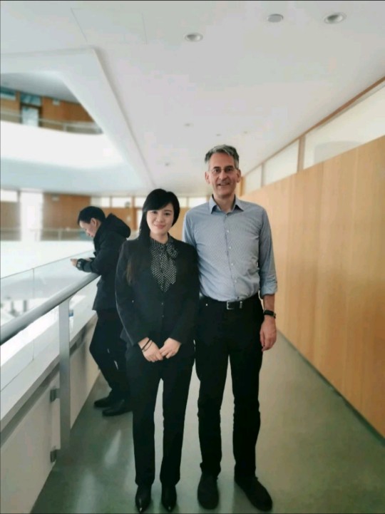 陳玉嬌(左)向德國被動房研究所執行所長 考夫曼先生請教、學習