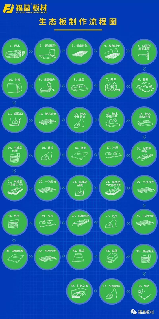 好工序成就一款好板材。磨刀不誤砍柴工,擁有好的生產設備生產工具,才能生產出好品質的板材。生產福晶品牌板材的廠家是湖南省楊林木業有限公司,引進日本、意大利、德國等一流生產技術和生產設備,在寬敞明亮的工廠里完成這36道的復雜工序,成就了福晶負離子潔醛板這一高端板材。