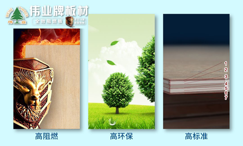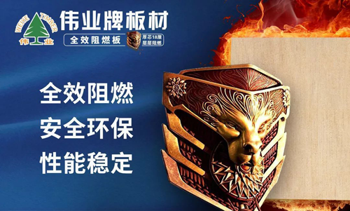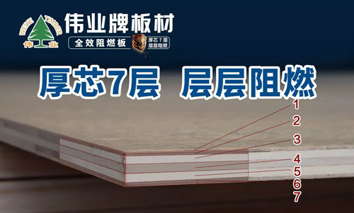 偉業牌阻燃板的阻燃等級達到B1級,優質的單板通過阻燃劑全效覆蓋,能夠有效抑制木質纖維達到熱分解臨界溫度和著火點;同時產品實現厚芯7層、層層阻燃,徹底改變傳統板材易燃易燒的缺點,在明火高溫作用下難以起火、蔓延速度慢,能從根本上抑制火災發生。