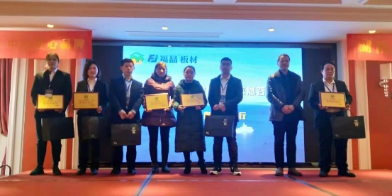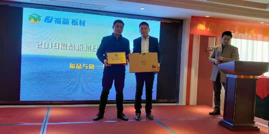 接下來是激動人心的頒獎環節。福晶板材離不開各位經銷的支持,一分耕耘一分收獲,大家為公司揮灑的每一滴汗水、所付出的一切都將終有回報。在全場雷鳴般的掌聲之中,福晶板材2018年度最佳銷售獎、最佳成長獎、突出貢獻獎各有歸屬,各位獲獎者喜氣洋洋上臺領獎,其中尤其引人注目的兩個大獎,最佳成長獎被來自漢川的湯總斬獲,最佳貢獻獎則被來自天門的宋總攬入懷中,獎品是兩臺熠熠閃光的小米電視機,在全場的一片艷羨之聲中,獲獎者接過沉甸甸的獎品之后發表了簡短、真誠的獲獎感言,經銷商的奮力拼搏,帶動了公司2018年銷售業績大踏步向前邁進,我們完全相信,公司2019年的銷售將會更加火爆!