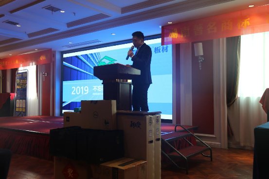 接著,答謝會進入正式議程,福晶板材總經理陳嬌先生上場致開場辭。首先,陳總代表楊林木業福晶板材的全體員工向到場的各位經銷商致以了最衷心的感謝,其次,陳總針對2018年的市場環境著重講述了福晶板材在品牌營銷,生產設備,品質保證等方面做出的種種應對方案,福晶在2018年完成了華中五省中心城市覆蓋的初級目標。陳總說福晶板材在2018年優化了產品結構,填充了低中檔產品的空白更好的迎合了客戶的需求,在配送方面公司也是加大了力度,成功的開設了武漢舵落口配送中心和鄂西北配送中心,這兩大配送中心的成立很好的解決了物流配送成本高和不能及時到貨等經銷商困擾的難題。2018年也是福晶板材走出三湘大地,走進湖北的第四個年頭,更是福晶板材銳意進取,成績卓越的一年,凝聚了在座每一位經銷商的辛勤汗水和默默地奉獻,最后陳總再次向各位到場的經銷商們致以了最真誠的謝意。2019年福晶將在產品質量,營銷,服務等方面實現行業創新。