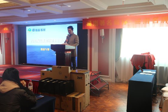 接下來是令人期待的新品推介會。本次福晶板材春季訂貨會,公司帶來了灰絲木、簡約胡桃、格麗斯、楓影木等四個系列讓人眼前一亮的新產品,各位銷售商聽完新品介紹看過新產品之后,都是歡欣鼓舞心潮澎湃,有強大的公司作為后盾,有如此過硬的產品,何愁打不開銷路,何愁銷路不暢,系列新品更加增添了大家打開2019年銷售新局面的百倍信心。春季訂貨會最后王總做了2019年板材市場現狀及銷售技巧培訓,讓大家了解了現在板材市場的發展行情,也向各位銷售精英求取“真經”,這次大會大家真是收獲滿滿不虛此行。隨著我國經濟的不斷發展,人民生活水平的不斷提升,人們的消費觀念和消費水平有了很大的轉變與提升,在此契機下,板材行業得到了快速發展,現在全國已經涌現出數以千計板材生產廠家,福晶作為板材市場近年來迅速崛起的品牌之一,福晶公司高度重視市場營銷與品牌推廣,在品牌管理上,福晶對內不斷完善品牌體系建設,對外持續大手筆廣告宣傳推廣,尤其是今年年初強勢榮登全球第一屏-----紐約納斯達克大屏,不僅僅增加了品牌在于消費者心中的可信度,而且大大增加了福晶的國際知名度。