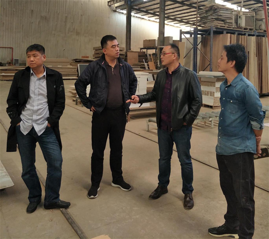 吉林森工人造板集團營銷中心總經理王波(左二)走訪客戶