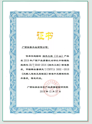 壯象板材企業(yè)在接到通知后,認真落實廣西優(yōu)質認證工作實施方案,借鑒國內(nèi)外先進質量管理經(jīng)驗,全面提升公司質量管理水平,不斷改進生產(chǎn)工藝、規(guī)范生產(chǎn)流程,實現(xiàn)全流程可追溯,公司步入高質量發(fā)展軌道,增強了品牌競爭力。此次,壯象板材企業(yè)成為首批獲得“廣西優(yōu)質”認證、“香港綠色標志”認證、“無醛板材”三項榮譽的企業(yè),是自治政府和香港特區(qū)對板材產(chǎn)品品質和質量管理的高度肯定,將對品牌的長遠發(fā)展具有重要意義。