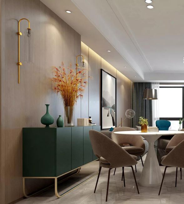 不管是組合啞光玻璃還是絲絨布藝亦在視覺上都可以形成一股極強的藝術張力,打造出時尚精致的現代家居環境。