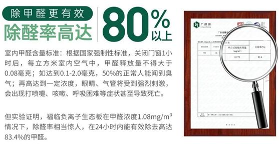 負(fù)離子健康型板材的第二重技術(shù)標(biāo)準(zhǔn)是:甲醛去除率;