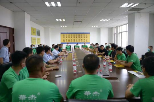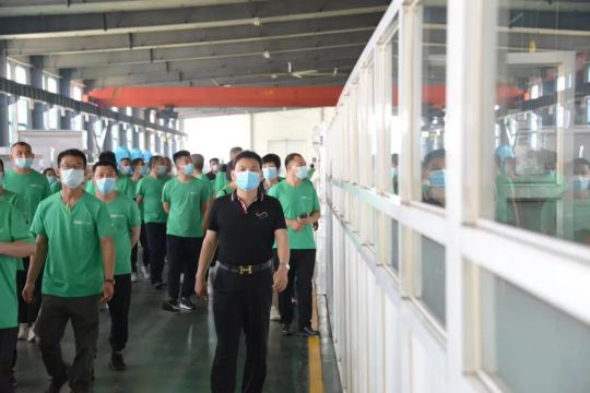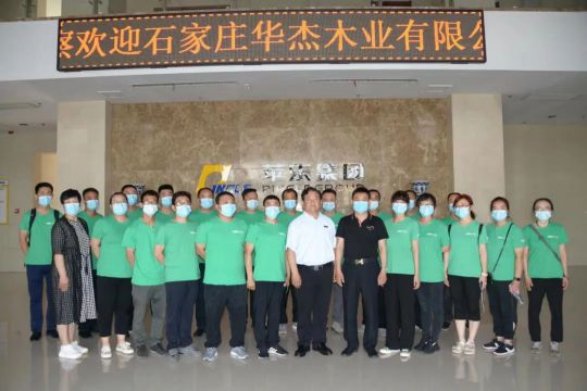6月3日,華杰木業(yè)董事長彭志軍,總經(jīng)理彭欽泊及生產(chǎn)部、人資部、研發(fā)部等50余人團(tuán)隊一行到訪河北蘋樂集團(tuán)參觀交流。