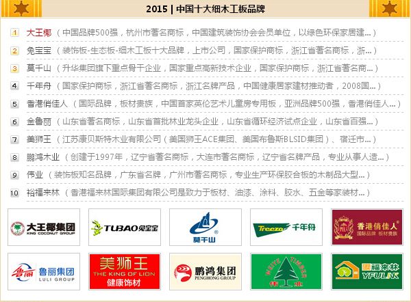 2015年中國網(wǎng)絡(luò)票選細木工板十大品牌為: