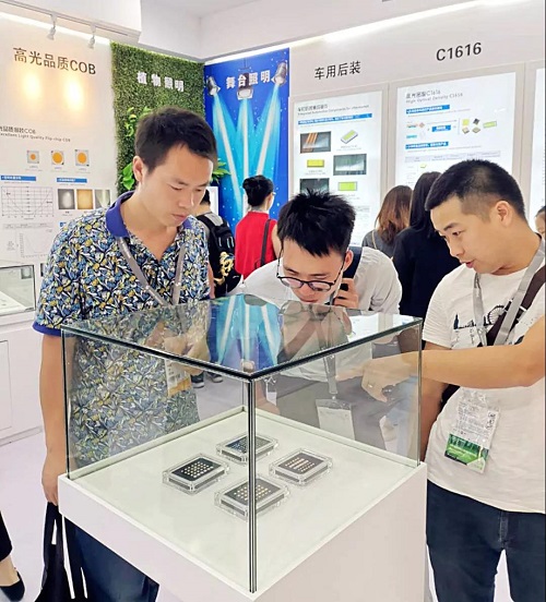除了主要的白光照明產品之外,鴻利智匯在細分領域也表現突出。MiniLED顯示屏技術方案,還有車用前裝和后裝照明產品和方案,植物照明和舞臺照明方案,以及紅外LED和人流統計模組方案等,已經在這個燈展上發布了。