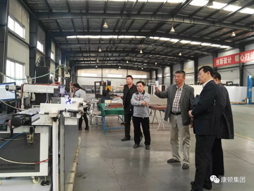田董事長陪同DAVID郭董一行參觀公司防盜門廠生產車間