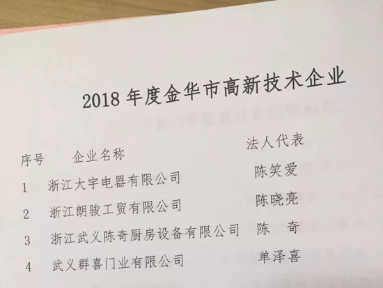 【群喜門業(yè)——2018年金華市高新技術(shù)企業(yè)】