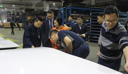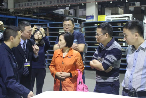 考察團還來到生產車間,參觀了薩瓦尼尼柔性折彎進口生產線,對招標產品的各個生產工序進行細致考察,現場講解人員認真解答考察團的各種問題,嘉賓們表示“實地考察后對美心產品有了更深入的了解,對美心門更加放心”。