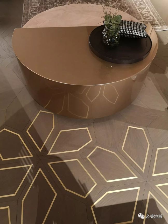 出自意大利菲列德羅的設計團隊,全新破土而出的Azalea拼花地板用美國胡桃木制作而成,表面經過拉絲、上色和清漆處理,制造出具有黃銅和大理石鑲嵌的效果。Azalea拼花