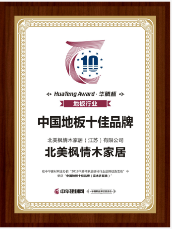 近日,在中華建材網打造的“華騰杯2019中國家居建材行業品牌征選活動”中,北美楓情木家居以其強大的渠道力量和卓越的品牌影響力贏得了消費者和專業評委的一致認可,贏得了華騰杯2019年“中國地板十佳品牌(多層實木類)”,并在品牌建設的道路上樹立了另一座豐碑。
