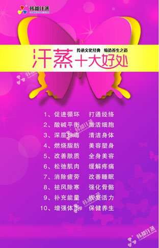 在眾多養(yǎng)生汗蒸館中,該如何選擇呢?由于品質(zhì)參差不齊,雖說都是汗蒸館,但在體驗(yàn)上卻大不一樣。韓都上乘的品質(zhì)與服務(wù),帶給消費(fèi)者的是更愜意的享受,特別是在美容養(yǎng)顏、去脂減肥、養(yǎng)生保健上的效果較其它品牌汗蒸更為顯著,再加上韓都汗蒸的專業(yè)性,對工作壓力較大的上班族來說,減壓效果也明顯,在韓都汗蒸房可使他們放松身心,享受舒適愜意,這也是眾多消費(fèi)者會選擇韓都汗蒸的原因。
