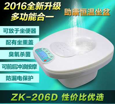 2016款助康坐浴盆ZK-206D在功能設計上加入了恒溫加熱功能、臭氧殺菌功能、藥物熏蒸功能、有氧360°沖浪按摩等功能,在設計之初考慮到之前坐浴盆在使用過程中出現的使用不便捷的問題,在此款坐浴盆的設計上都進行了改進和完善,ZK-206D坐浴盆可以直接放在坐便器上使用,解決了放在凳子上不安全不穩固的問題。同時配備了專用的坐浴凳子可供選配,讓您在坐浴的時候不僅僅局限在衛生間內,同時配備的坐浴凳還可以充當免下蹲座便凳使用。