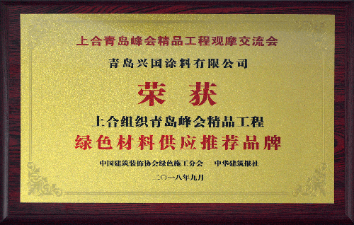 會(huì)議上好中選優(yōu),優(yōu)中選強(qiáng),對(duì)國(guó)家重點(diǎn)工程中使用綠色高品質(zhì)裝飾材料進(jìn)行集中展覽展示,興國(guó)水漆在會(huì)議期間受到多家建筑裝飾項(xiàng)目公司青睞,并榮獲由中國(guó)建筑裝飾協(xié)會(huì)頒發(fā)的“上合組織青島峰會(huì)精品工程綠色材料供應(yīng)推薦品牌”獎(jiǎng)牌。