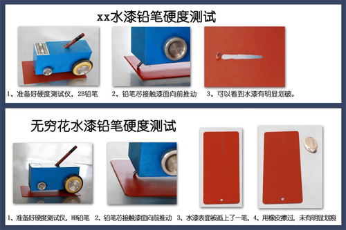 圖2中從硬度方面比較,同樣的系列產(chǎn)品,好水性漆具有良好的硬度,可以抗刮傷。每個產(chǎn)品的硬度是不一樣的,最高的硬度可以達到3-5H。