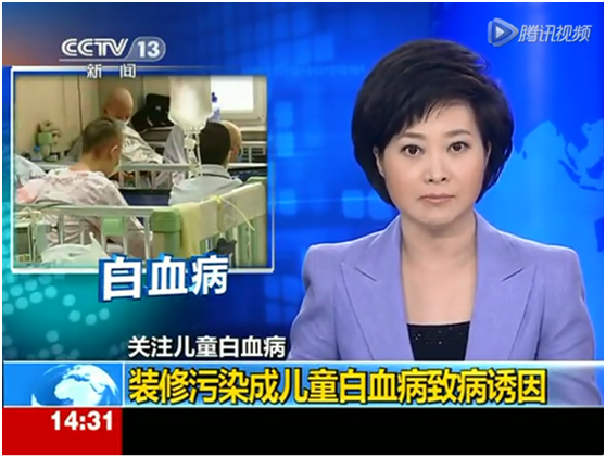 【CCTV-13 新聞】關注兒童白血病-裝修污染成兒童白血病致病誘因