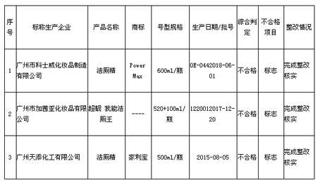 2015年廣州市衛(wèi)生潔具清洗劑產(chǎn)品質(zhì)量監(jiān)督抽查不合格產(chǎn)品及其企業(yè)名單