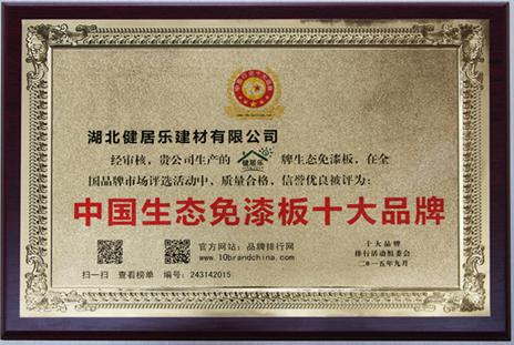 健居樂一直秉承以技術研發、市場發展為方向。公司技術團隊參與制定了《中國浸漬膠膜紙飾面膠合板國家標準》,并一舉攻克了E0級生態板核心技術“膠粘劑”,“健居樂消除游離甲醛環保藍膠”已獲得突破性的技術成就。健居樂先后通過了ISO90011質量管理體系和ISO14001環境管理體系認證;獲得“中國生態免漆板十大品牌”,并榮獲省著名商標、省名牌產品等稱號。