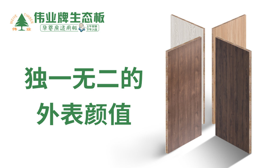 偉業牌生態板注重內部和外部維修,從原材料到核心材料,從質量到外觀,他們嚴格堅持工藝理念,有效彌補了普通生態板材易起泡脫膠、易翹曲、易褪色、甲醛超標等質量缺陷,從內部到外部都無懈可擊,贏得了同行和消費者的一致好評。