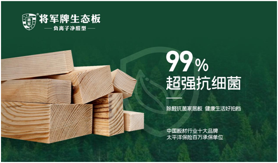 如今,地產業的發展、城鎮化的加快等原因,帶動了我國板材行業的飛速發展,行業保持穩中向好的發展態勢。未來,無醛系列產品再搭配上良好的舒適度及耐用性是板材行業發展趨勢。而將軍板材,正是一款源于自然,主打“簡約、環保、安全”的將軍牌生態板。