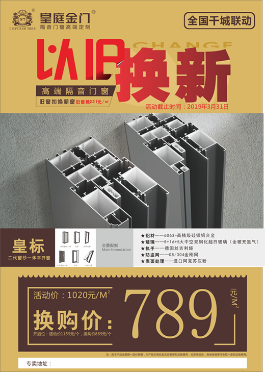 新時(shí)代的人們懂生活、品生活、享生活,提倡節(jié)能、健康、時(shí)尚、綠色的環(huán)保生活。應(yīng)人們生活要求,皇庭金門催生出門窗以舊換新模式。這樣的營(yíng)銷模式不僅降低了門窗的生產(chǎn)成本,同時(shí)又做到了低碳環(huán)保,可謂是無(wú)可挑剔的好方法。