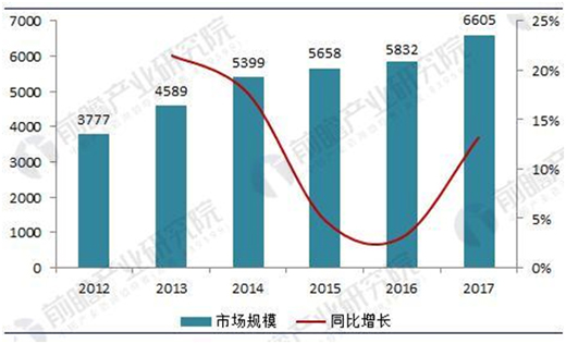 門窗行業市場規模自2012年以來便呈現跳躍式增長,2017年達到6605億元,目前門窗行業銷售利潤率保持在10%以上。