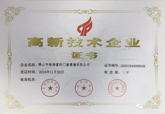在過去的17年里,富軒門窗在技術(shù)上不斷創(chuàng)新。根據(jù)消費者的實際需求,富軒門窗開發(fā)了多項國家專利技術(shù)。生產(chǎn)線日益擴大和完善。富軒門窗已通過“高新技術(shù)企業(yè)”認定和專家評審。早在2018年,富軒門窗就被評為“高科技企業(yè)”。這一榮譽稱號是對知名品牌富軒門窗創(chuàng)新能力的肯定,也是對自主知識產(chǎn)權(quán)的認可,進一步鼓勵我們堅持技術(shù)創(chuàng)新,提高產(chǎn)品性能,實現(xiàn)環(huán)保生活。