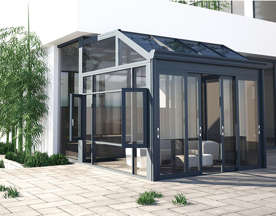 尊霸陽光房100*100系列采用新型節能環保型材,配置高強度尼龍隔熱條,加寬中空玻璃的中空距離,有效增強隔熱、隔音效果;采用的玻璃鍍有透光性能好、可反射紅外線的膜,更好地保護陽光房使用者的視力;受力結構合理,質量穩定有保證,外觀風格多樣,可滿足不同消費者的個性化需求。