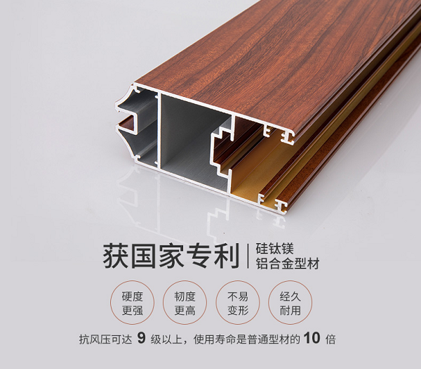 十大門窗品牌皇派選用的型材是國家自主開發并申請專利的鈦鎂鋁合金型材,特別添加硅元素,增強普通鈦鎂鋁合金的抗氧化性、抗沖擊性和耐腐蝕性,使用壽命是普通鈦鎂鋁合金的10倍。