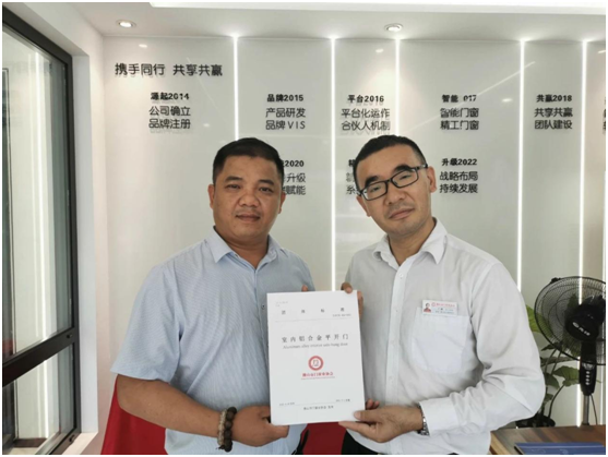 近日,佛山市門窗業(yè)協(xié)會(huì)戶誠(chéng)秘書長(zhǎng)帶著于2021年5月1日正式生效的T/FSTB 002-2021《室內(nèi)鋁合金平開門》標(biāo)準(zhǔn)前往漢慕斯門窗企業(yè)進(jìn)行標(biāo)準(zhǔn)宣貫工作。
