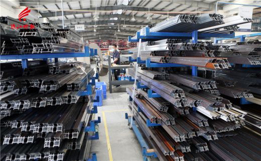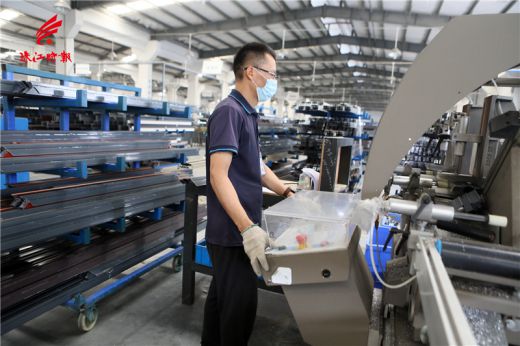 走進億合門窗的生產車間,門窗產品的零配件整齊擺放在一角