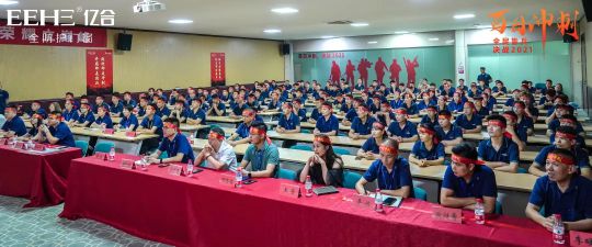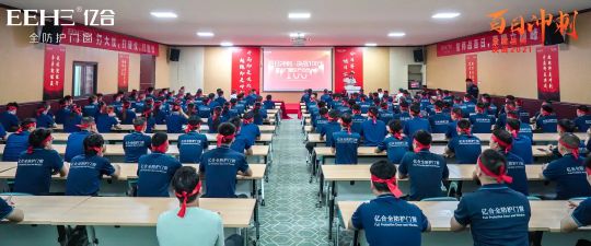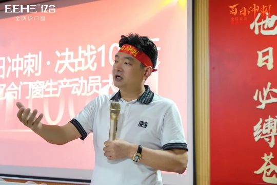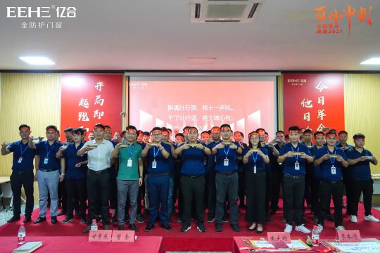 為激勵大家更飽滿的激情、更加昂揚的斗志,助力“20天交付突破行動”順利開展,億合門窗總部隆重召開了“百日沖刺”生產員工動員大會。億合門窗董事長曾奎、副總經理朱大均等領導、生產中心全體班組管理人員及員工代表共同出席會議。