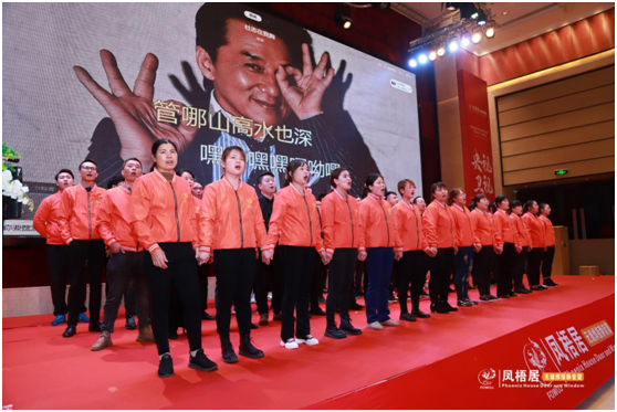 隨后迎來團隊風采展示環節,一支支氣勢高昂的團隊在激昂的樂曲中踏著鏗鏘的步伐步入舞臺,那別具一格的團隊風采和口號展示了鳳梧居人同舟共濟、勇敢向前的堅定信念,昂揚的志氣在會上留下了濃墨重彩的一筆。