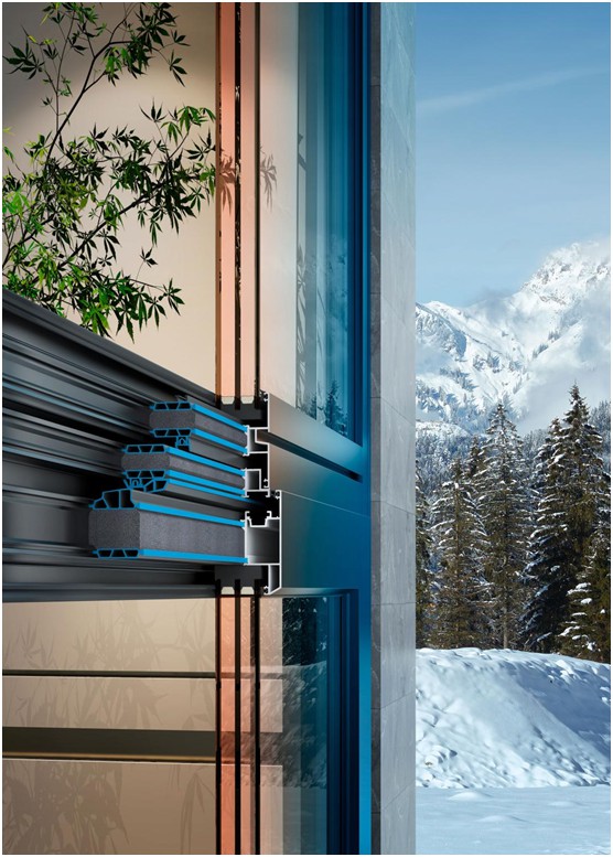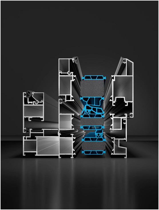 產品均采用隔熱斷橋鋁合金型材,多腔體結構搭配PA66尼龍隔熱條,阻隔鋁合金型材的熱傳導通路,可以更好地隔斷熱量的傳遞以達到保溫隔熱的目的,減少室內冷氣和暖氣的流失損耗,最終達到“節能降耗”的效果。