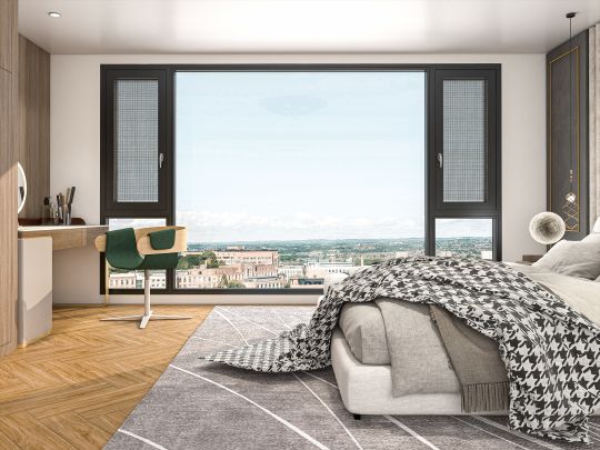 陽光照射進來所產生的熱量,中空玻璃只能減少,不能杜絕,要求高的客戶可以選擇百葉式鋁合金門窗,通過百葉阻擋陽光紫外線照射入室內。