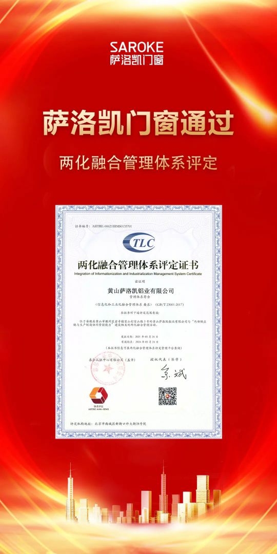未來,薩洛凱門窗將堅持并強化《兩化融合管理體系要求》建設,持續應用兩化融合管理體系的思路和方法,不斷打造公司發展的新型能力,推動數字化、網絡化、智能化發展,全面提升內部管理綜合水平。