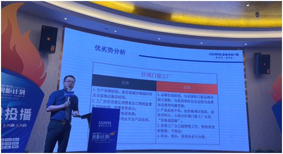 臨近會議尾聲,皇雅門窗系統營銷中心總經理張勇先生為大家帶來了《共享模式·低成本高效拓展》專題演講。在演講中,張總談到:皇雅區域工廠新模式不僅有效縮短當地生產周期,減少物流貨損,讓安裝售后服務響應更加迅速;還能在一定程度上減輕生產負擔,降低投資風險;并賦予消費者監督生產的權利,使得消費更加透明、更加放心。