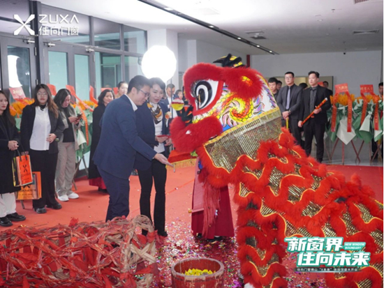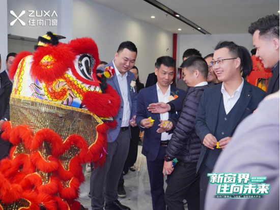剪彩儀式后,醒獅點睛環(huán)節(jié)將現(xiàn)場氣氛推向高潮。廖敏女士和楊硯涵女士手持金筆,為祥獅點睛,寓意著住向門窗在新的一年里生意興隆,財源廣進。醒獅舞動,鑼鼓喧天,現(xiàn)場觀眾無不為之振奮,共同感受傳統(tǒng)文化與現(xiàn)代科技的完美結(jié)合。醒獅的威武與門窗的精致相得益彰,展現(xiàn)出住向門窗在傳承與創(chuàng)新中的獨特魅力,也象征著品牌將在新的一年里如醒獅般活力四射,勇往直前。
