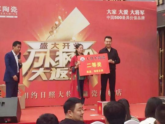 ▲大將軍陶瓷日照運(yùn)營中心總經(jīng)理魏斌先生登臺(tái)講話,并指出將來日照大將軍陶瓷將與品牌攜手共進(jìn),加大力度提高消費(fèi)體驗(yàn)和服務(wù)質(zhì)量,在為消費(fèi)者營造更幸福的現(xiàn)代人居生活的同時(shí),讓大將軍陶瓷在日照精彩盛開!