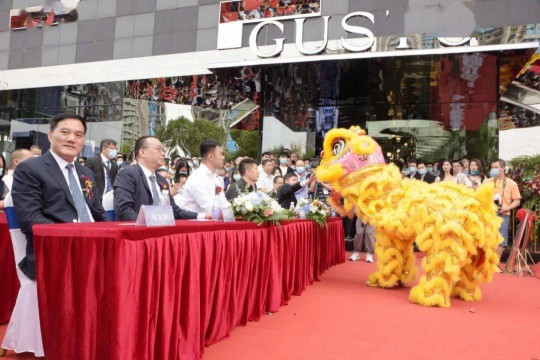 品牌華章,閃耀揭幕!在現場眾多來賓的見證下,何總攜領導班子與華哥同執金剪,隨風飄曳的綢帶象征著格仕陶“夢賞家”新總部的正式揭幕,傳達出眾人美好的祝福和殷切的希望,同時也預示著格仕陶發展即將開啟蓬勃的新篇章!