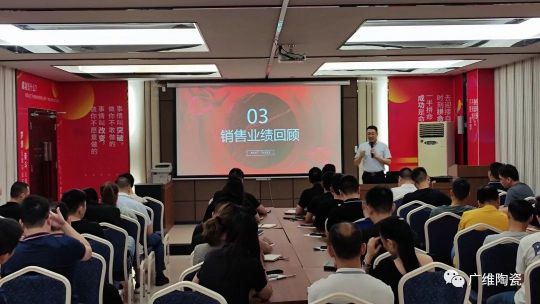5月30日,廣維陶瓷召開了培訓總結會議,會上市場部方彬針對在場的銷售精英進行了職責內容的培訓和下步品牌營銷推廣內容,隨后企業總經理招總對整體的銷售完成情況進行了點評,同時明確下個月目標任務方向。