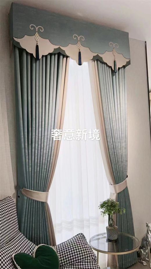 卡斯特·卡薩奢意新境新款窗簾以青藍色為主,奢華不浮躁。懸掛窗邊,為室內引入明亮的光線,帶給人們內心的平靜和放松,營造了輕奢新意境,拉長了歲月的悠然時光。